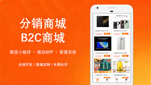 面向 C 端零售的分销商城:分销商入驻与等级体系、佣金与结算、推广链路可追溯;前台购物与会员成长、优惠券与活动营销、订单与售后一体化,支持小程序 / H5 与统一后台运营。